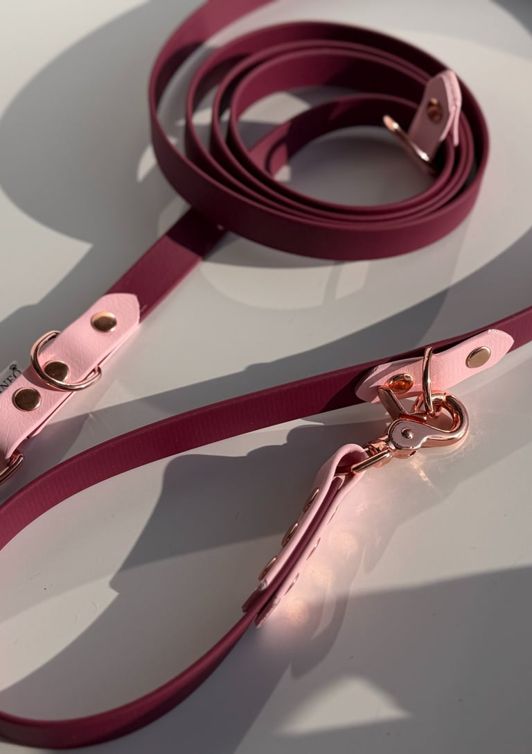 BioThane® – tai tvirta ir praktiška medžiaga, gaminama JAV. Ji nebijo vandens, purvo ar lietaus, nesugeria kvapų ir yra lengvai prižiūrima. Visi BioThane® gaminiai yra patikrinti dėl tvirtumo, todėl puikiai tinka kasdieniams pasivaikščiojimams ir aktyviam laikui su šunimi – bet kokiu oru.